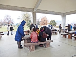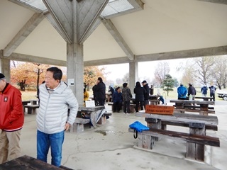 昨日の夜から雨が降り始め、朝方は小雨交じりの寒い朝気温は3度、皆さん出てきて頂けるか心配でしたが、先ずは出かけて行きました。