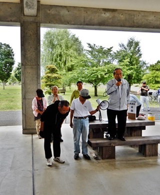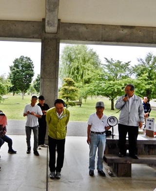 会長のあいさつから始まり、新役員の紹介(島村総務部長:近藤企画部長;佐藤広報部長)と(田島事務局長:田中事務副局長)が有り、公園管理側から大原学武施設管理課長のご挨拶も頂き30年度花ボラが盛大に行われました。