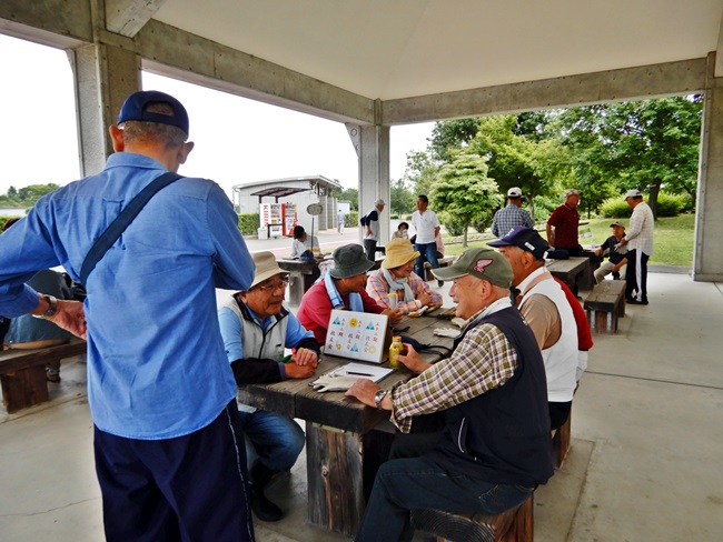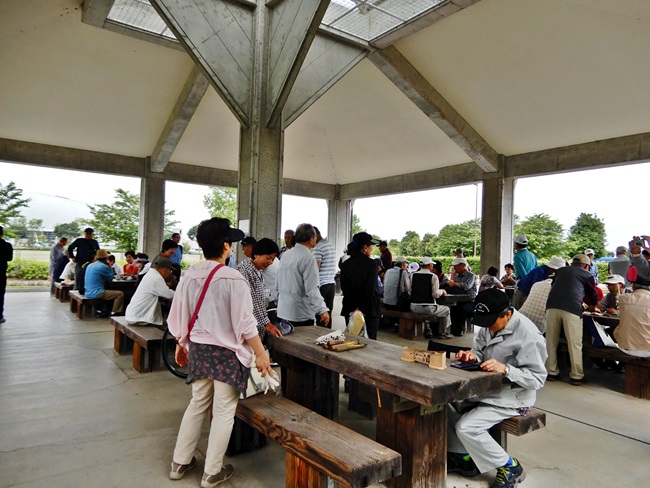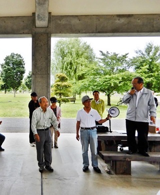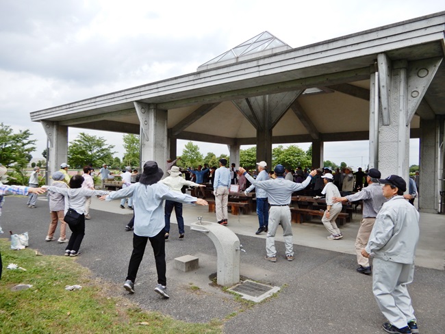 ラジオ体操が始まると四阿の周りに散らばり心地よい空気をいっぱい吸って気持ちよさそうです。