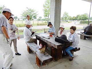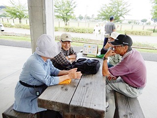 いかんせん暑く木陰に集まってしまいます。無理は禁物ですから・・・しかし仲間が集まると笑顔でお話ししている光景が見られます。