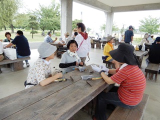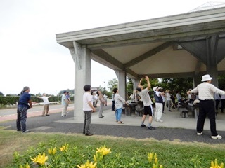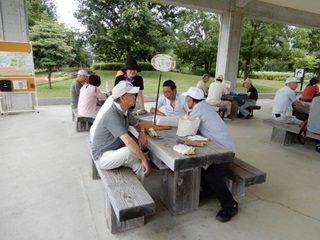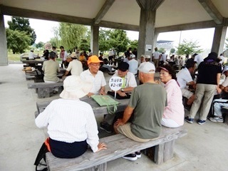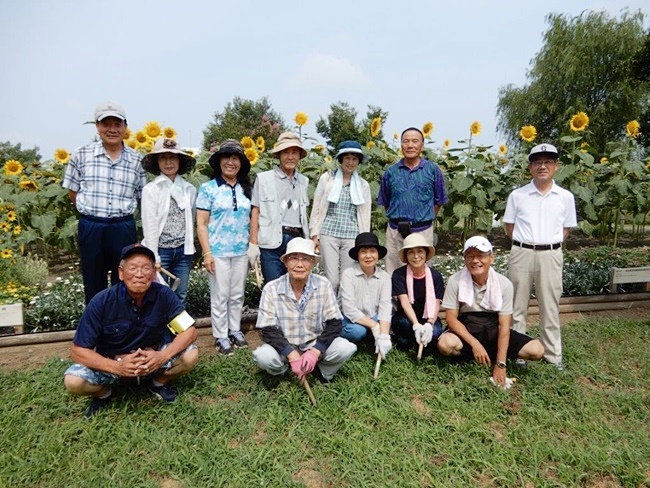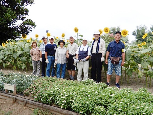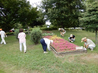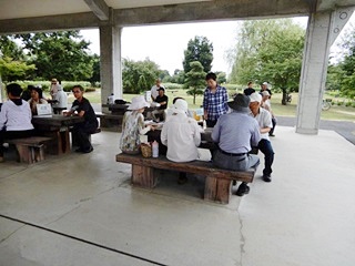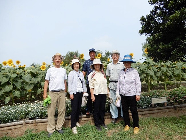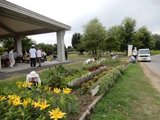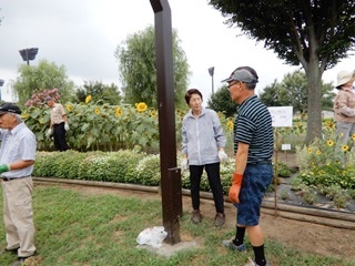 今回は花壇に「防草シーと」を張ったため草はほとんど生えていませんでした。よって花壇の周りの草を採りました。いかんせん暑く木陰に集まってしまいます。無理は禁物ですから・・・しかし仲間が集まると笑顔でお話ししている光景が見られます。