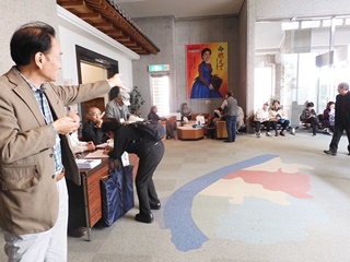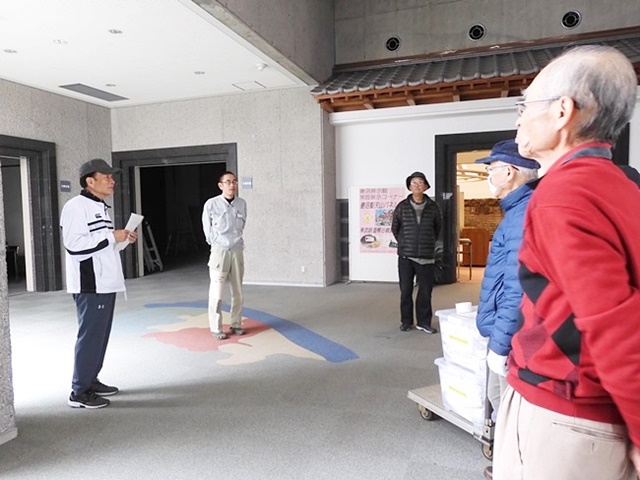 会議終了後、展示館の下見を行い、パネルの設置場所、テーブルの設置、受付場所の現地確認を行い