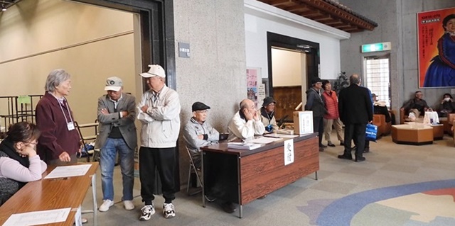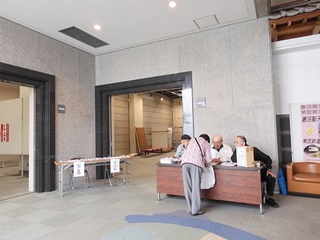 ここで展示館はいったんドアを閉めて、近藤実行委員から、展示品の搬出作業に入りますが、出品者(または代理さん)が展示場所に行って、展示物を持って受付に搬出報告してください。