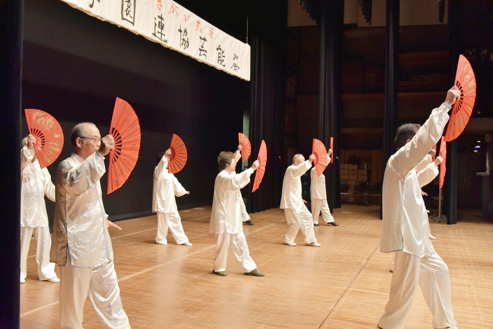 芸能祭が終了して、現在の心境は快晴です。出演を前に、文化センター脇の駐車場でリハーサルしている皆さんの楽しそうな顔、お金をかけた色とりどりの衣装、またそれを見ている受付係をはじめ裏方である実行委員の満足そうな眼差し。