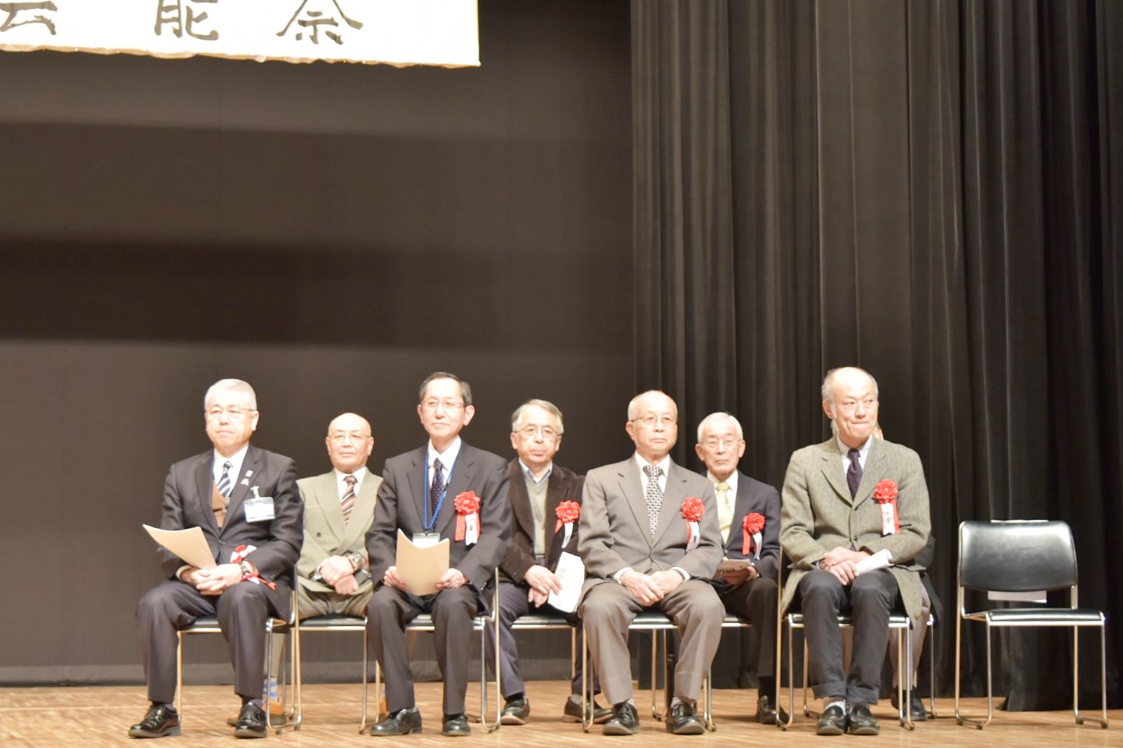 緞帳が上がり、開式です。舞台にはご来賓と会長・実行委員長が着席されています。