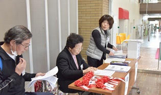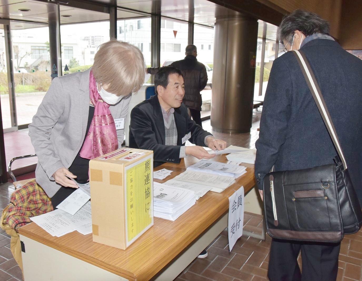 センターの玄関には“立て看板“が準備され、開場の9時前には受付掛かりも準備され受け入れ態勢は万全です。