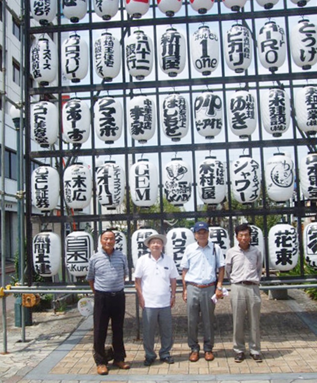 そのあと、昨年と訪れた同じ場所、星川の入口に賑わった熊谷うちわ祭りの余韻を残した多数の祭りの提灯が飾ってある前で元気に記念撮影。
