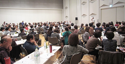会場は200名を超える盛況です。お弁当が皆さんに配られていますので、皆さん食事をしながらおしゃべりに花を咲かせています。ランチタイムは10時50分から12時までです。