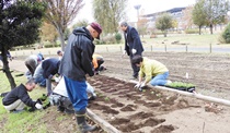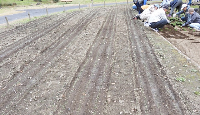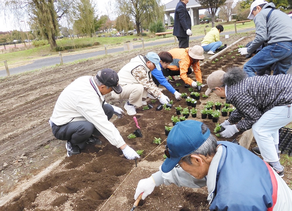 11月13日(水)第12回目の花ボラに参加してきました。本日の参加者は120名でした。めっきり寒くなりまた。8時現在9℃曇り日で日中も晴間が見られず最高気温も15℃でした。それでも皆さん出だしはよいです。今日は、苗の植え付け日です。
