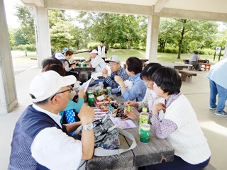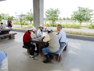 ラジオ体操が始まると四阿の周りに散らばり心地よい空気をいっぱい吸って気持ちよさそうです。