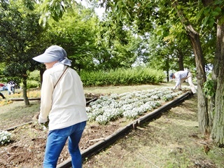 各担当の花壇に移動して除草作業に入ると、花根の根抜きです。アッという間の作業で終了してしまいました。