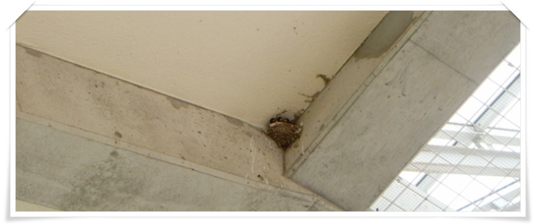 (四阿の屋根裏のツバメの巣)
