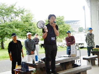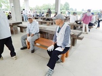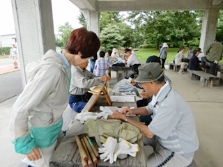 今日は長袖姿の方が大半です。しかし草むしり作業には絶好の日和で、仲間の笑顔で元気を頂くことができました・本日は113名の参加を頂きました。