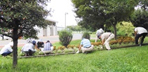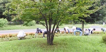 担当の花壇に移動して除草作業に入ります、抜いた草木は一山に積んでおけば管理事務所で整理して頂けます。