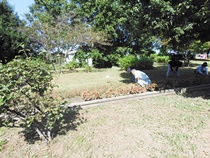 ラジオ体操を行い 担当の花壇に移動して除草作業に入ります、抜いた草木は一山に積んでおけば管理事務所で整理して頂けます。