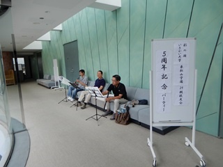 7月8日(月)、東松山市総合会館で「東松山学園29期5周年記念パーティー」に友情出演してきました。午後1時 総勢9名で控室に入り、出番を待ちますが、少し緊張気味・・・