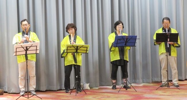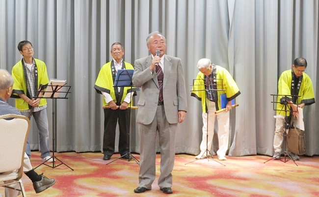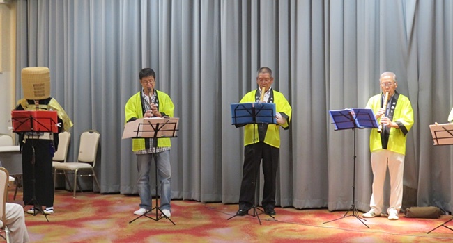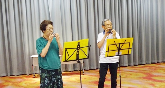 皆さんで「夕焼け小焼け・雨降りお月さん・津軽平野・矢切の渡し・北国の春・あぁ人生に涙あり・最後に 岸壁の母」7曲吹いてきました。