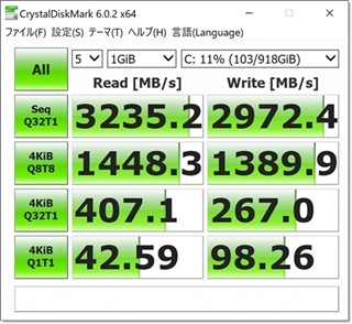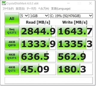 上記データはCrystalDiskMarkというフリーソフトで計測しています。