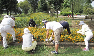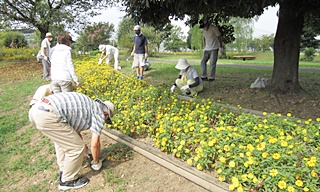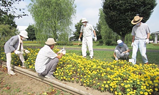 各期、持ち場のエリアに出向きます。日照りが続いたせいで、前に植えて苗が一角剥げて無くなっていました。半面雑草が少なくなっています。