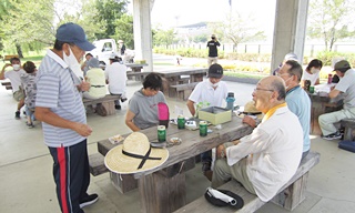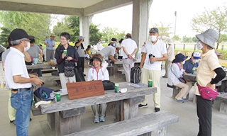作業終了後、四阿に戻り、頂いたお茶で喉を潤し、解散となりました。