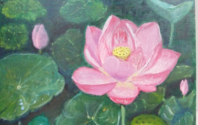 未来の若い(ハスの目)と向き会い頑張る蓮の花。
