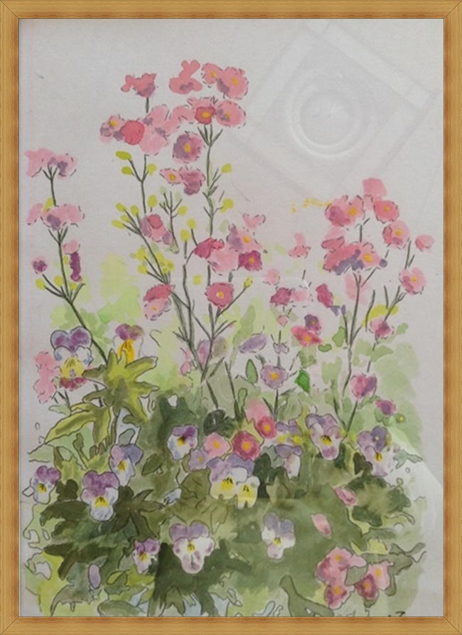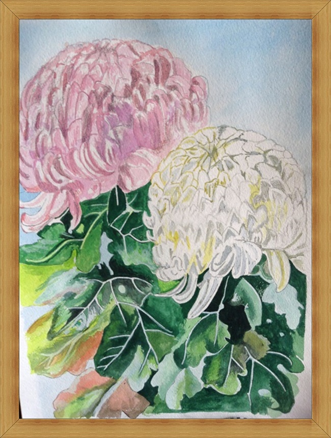 ちょっと前に描いた絵ですので、花の名前を忘れましたが「マリーゴールド」だったと思います。
