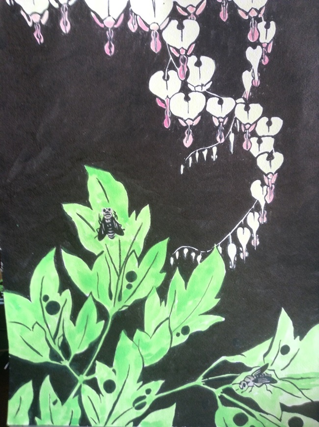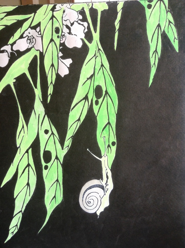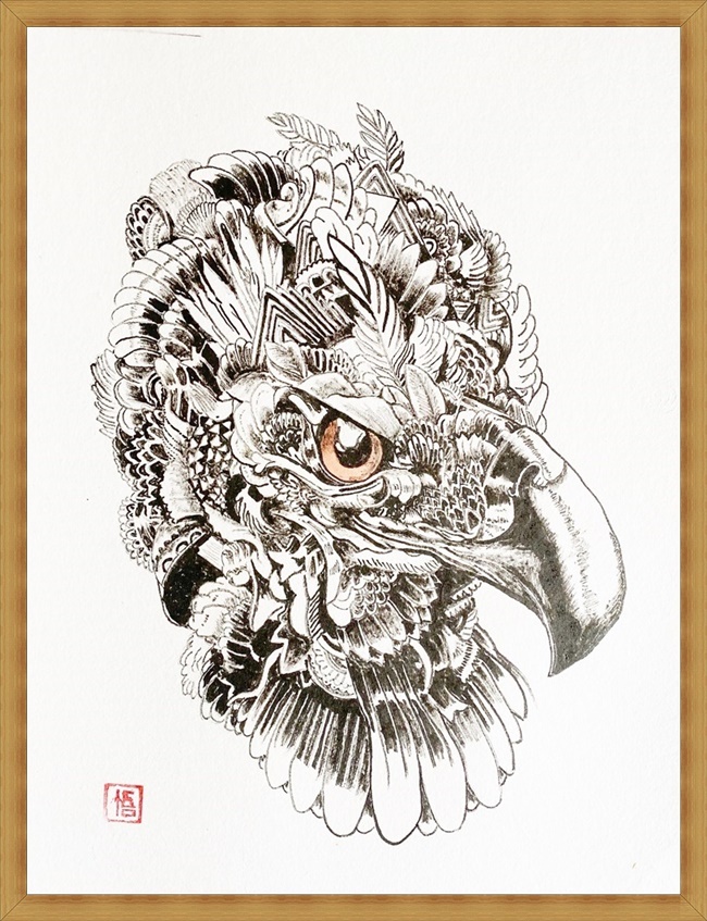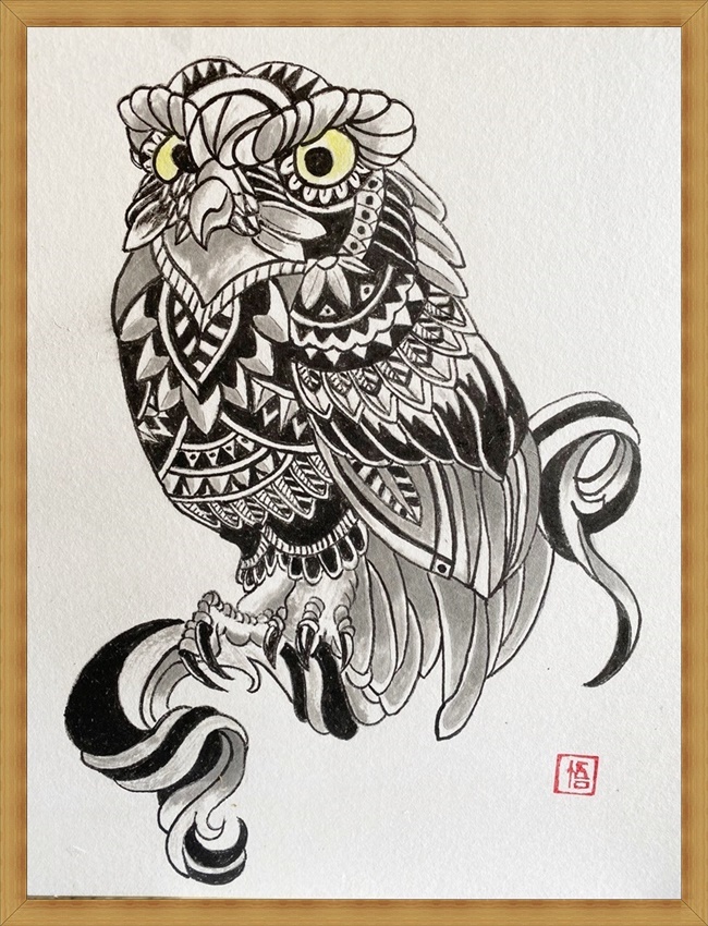 水墨画というより墨絵になっており、現実離れしたタッチで描きました。