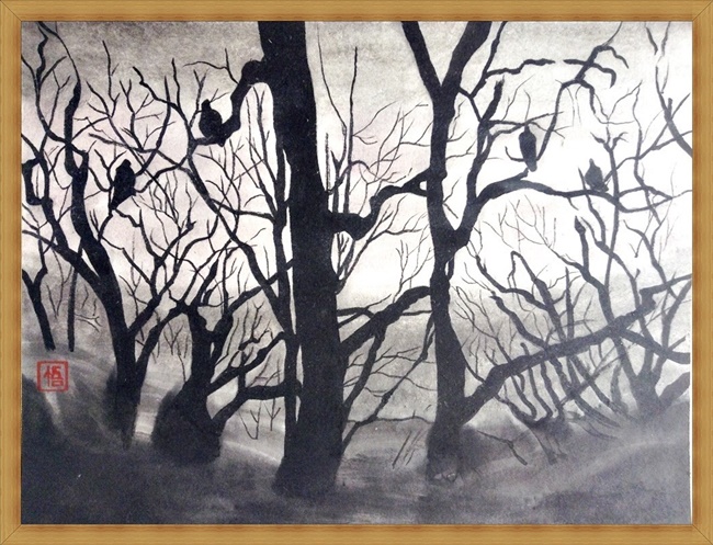 ・沼田の田舎に行った時に、夕方の立ち木に羽を休ませているカラスです。