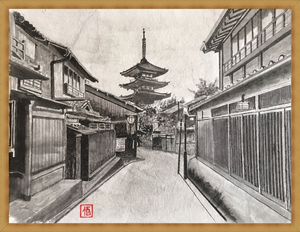 ・一昨年、甥の結婚式に行った時の京都です。此処もよく雑誌に掲載されておる場所で、同じ風景を描きました。