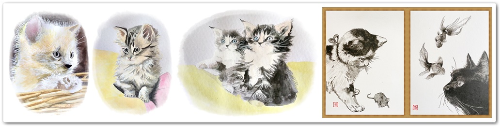 今回は、猫を描いてみました。猫は犬と違って我が道を行く!と言うタイプで、中々懐きません。しかし、飼っているとやはり可愛い動物です。