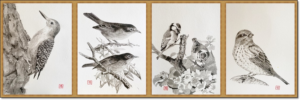 今回の絵画の投稿で4回目となります。今回は水墨画のみの小鳥(山鳥)を描きました。次回からは、風景画や猛禽類を投稿していきます。