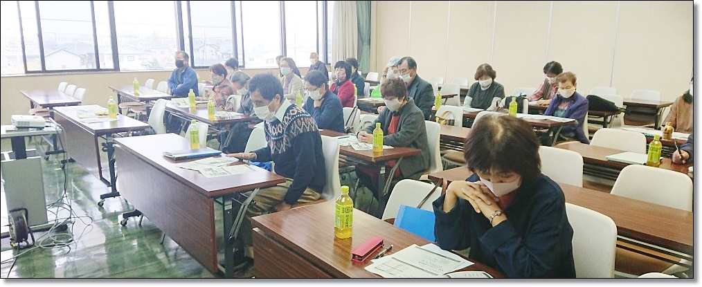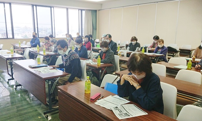 令和2年11月20日、校友会43期と44期の合同学習会が、妻沼行政センターで開催されました。県政出前講座を利用しての企画で、23名が出席しました。講師は県広聴広報課の芹沢さん。我々の子供より下の世代の若い女性です。