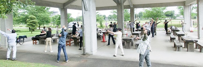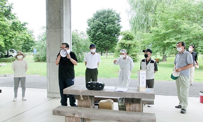 次に公園事務所の加藤課長より春苗は既に植付を実施済で、本日は雑草取りになる事とアナウンスした後全員でラジオ体操を行い花ボラを実施しました。