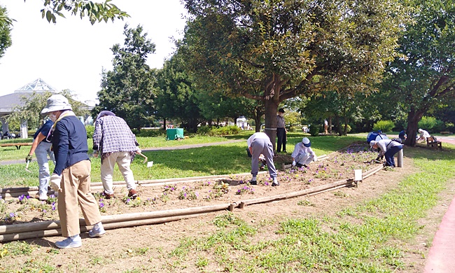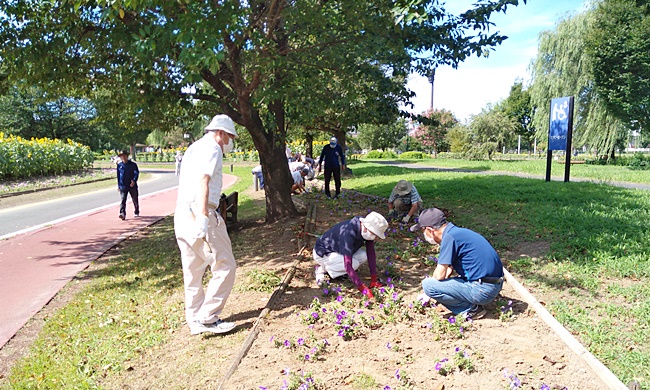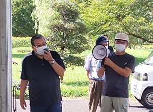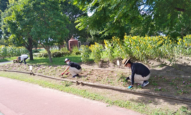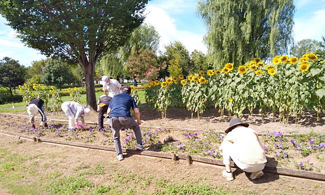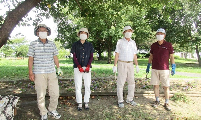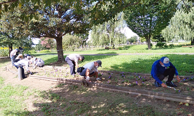 本日8月11日(水)の花ボラに連日の暑さにも拘らず51名の方がご出席頂きました。会長の挨拶はコロナ禍並びに暑さの中、本日の感謝を述べ8月の熊連協の会議については本日の三役会にて開催の有無を決めたいと発言した。その後ラジオ体操後作業に掛かりました。今回もスポーツ公園事務所よりアイスボックスに入ったお茶を用意して頂きました。