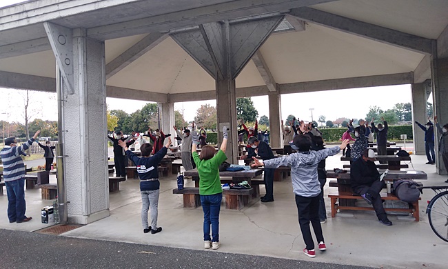 会長の挨拶並びに石川文化祭実行委員長の文化祭活動状況の話が有り、ラジオ体操終了後花ボラ活動に入りました。