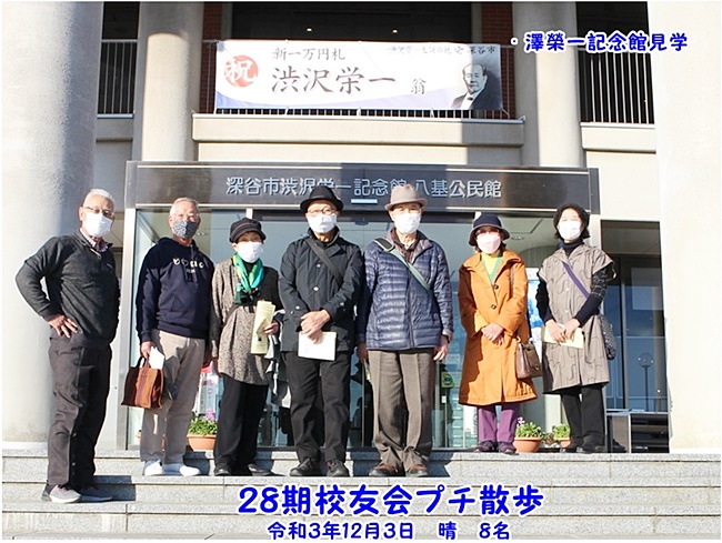 参加者は8名(参加率38%)で第1陣は12時深谷駅北口集合し、深谷公民館の「青天を衝け」