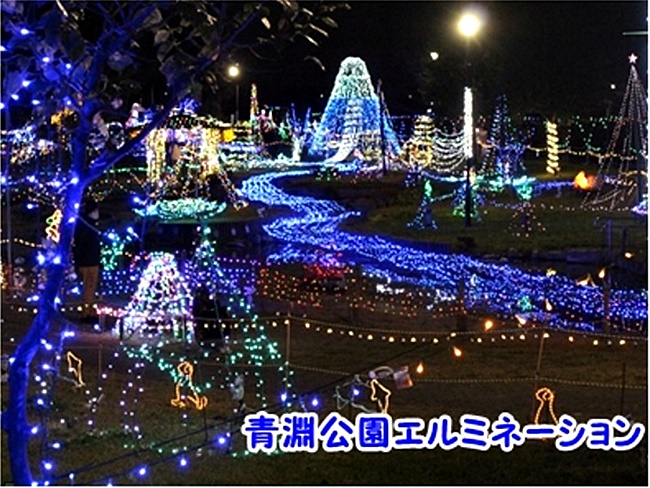 4時50分頃、若菜のバスで出発し、渋沢栄一翁生家の裏手の青淵公園のイルミネーションを