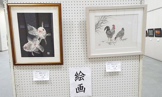 文化祭に水墨画11点、絵画2点および手芸1点、合計14作品が展示されました。