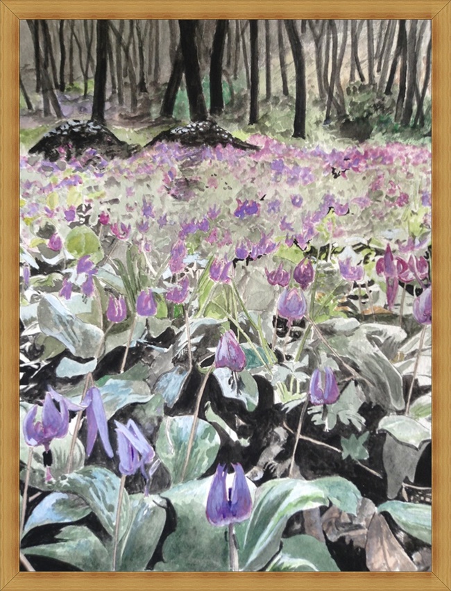 群馬県の三毳山(みかもやま)のカタクリの花の群生です。3年ほど前に熊連協文化祭に出展した絵です。此処は当時、駐車場も無料でしたし、見物客も少なくてゆっくり鑑賞出来ました。