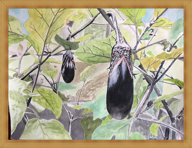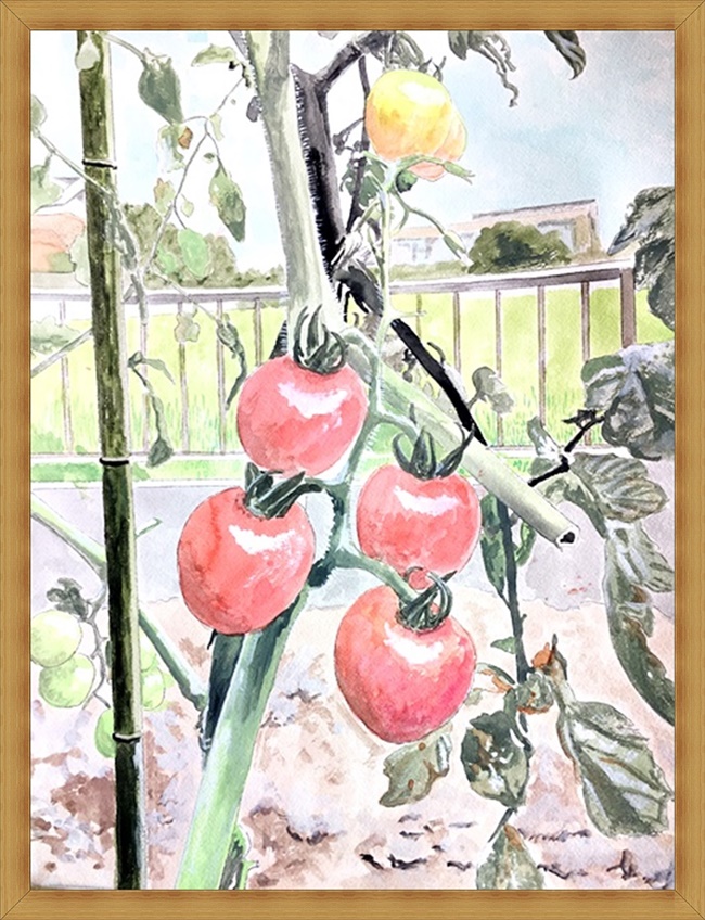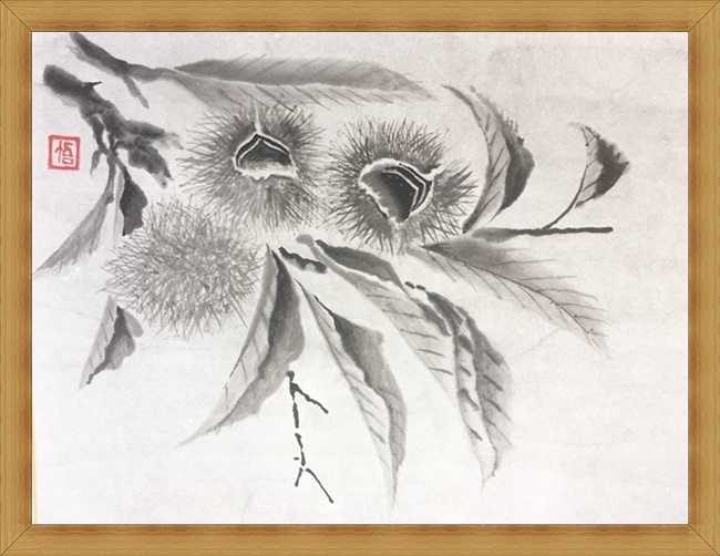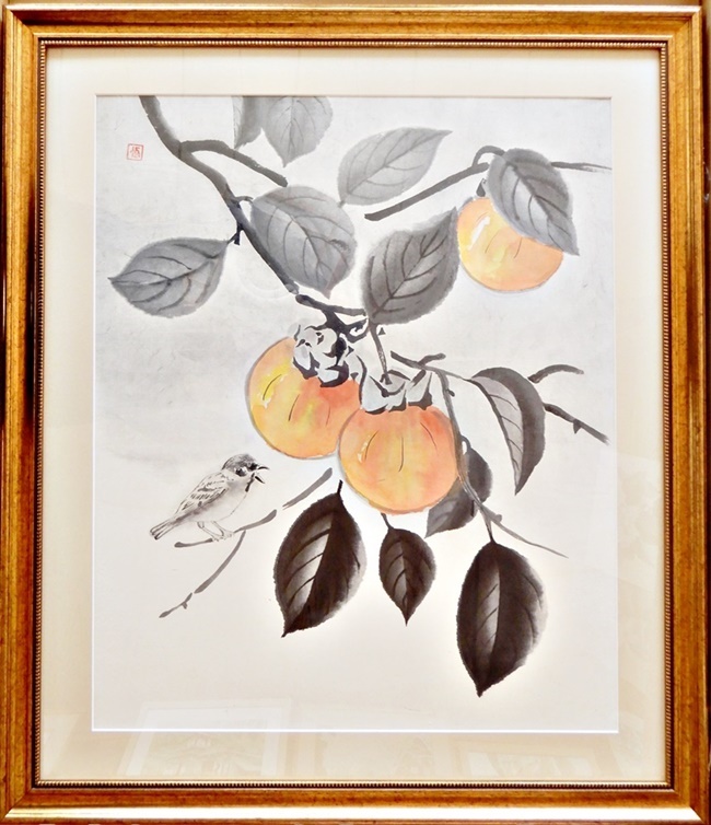 柿も毎年食べきれないほど収穫できますが、今年は不作でした。この水墨画は毎年「東京都美術館」で開催される「全国水墨画展」に出品し、入賞した作品です。
