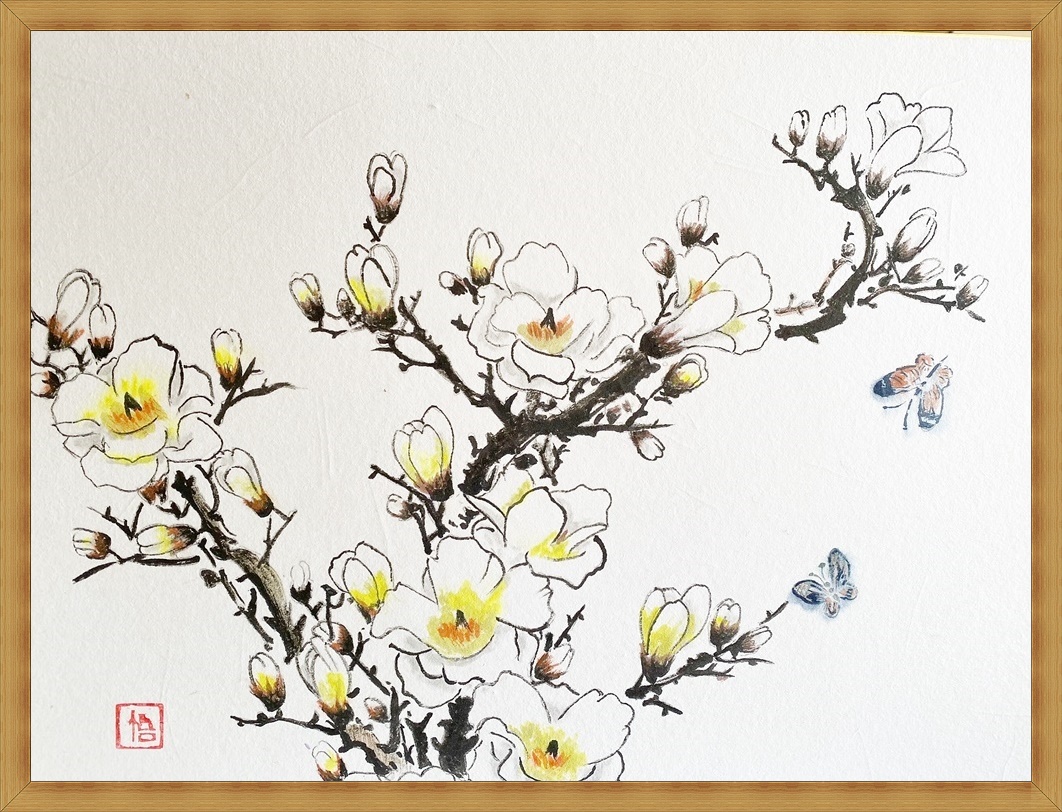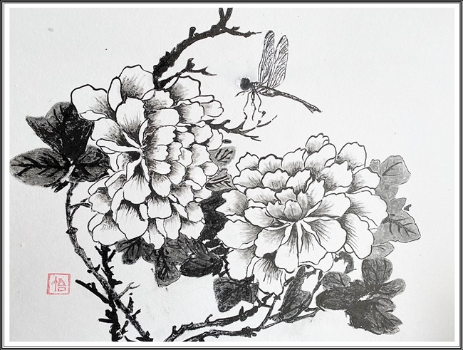 40期 田中さんの「水彩画、水墨画(墨絵): 牡丹・百合他」