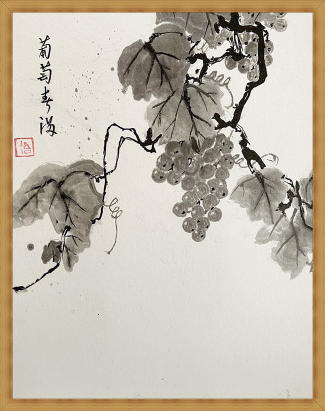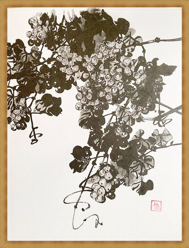 40期 田中さんの「水彩画、水墨画(墨絵):虎・葡萄・フクロウ」