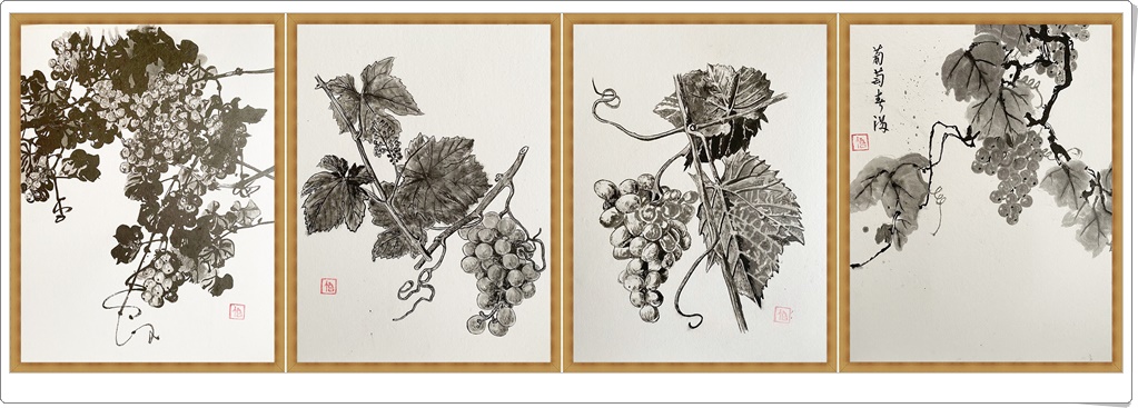 又、今年もおいしく育った葡萄を沢山食べましたので色々な葡萄を描きながら