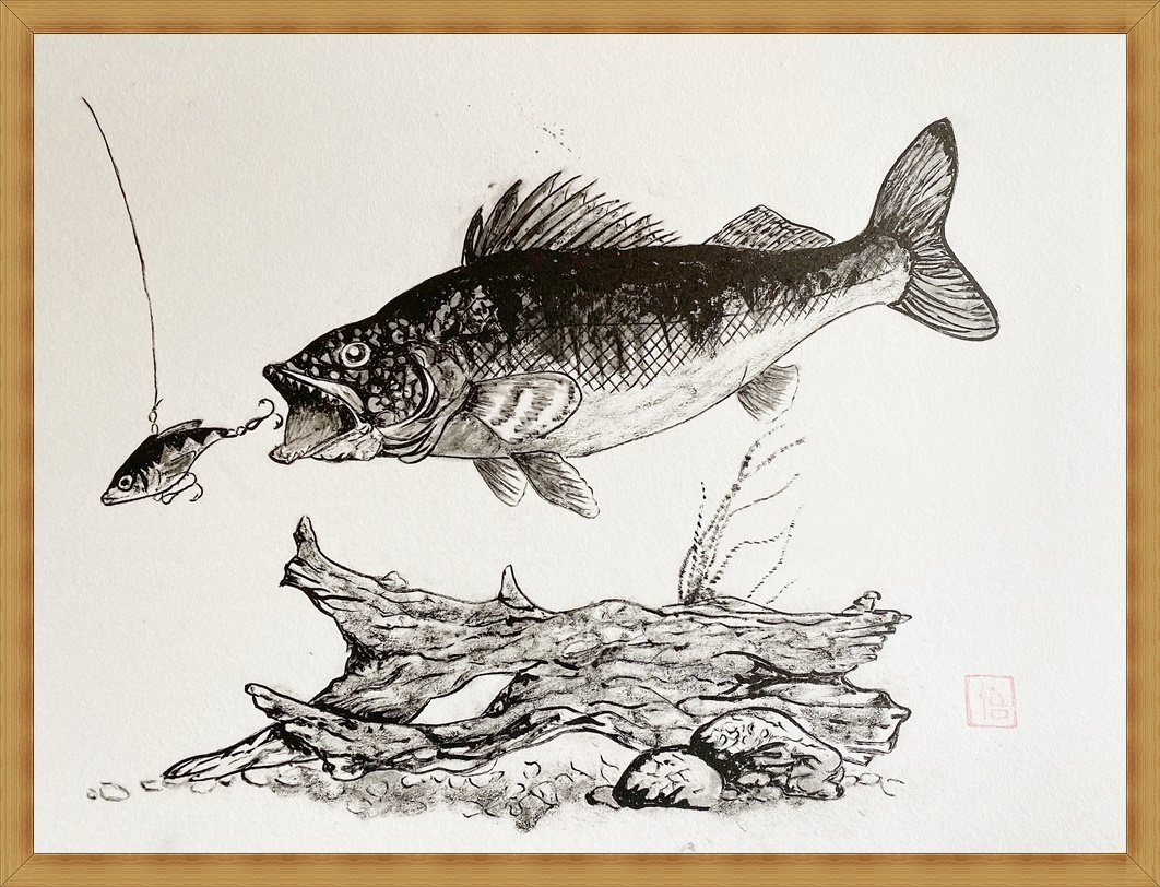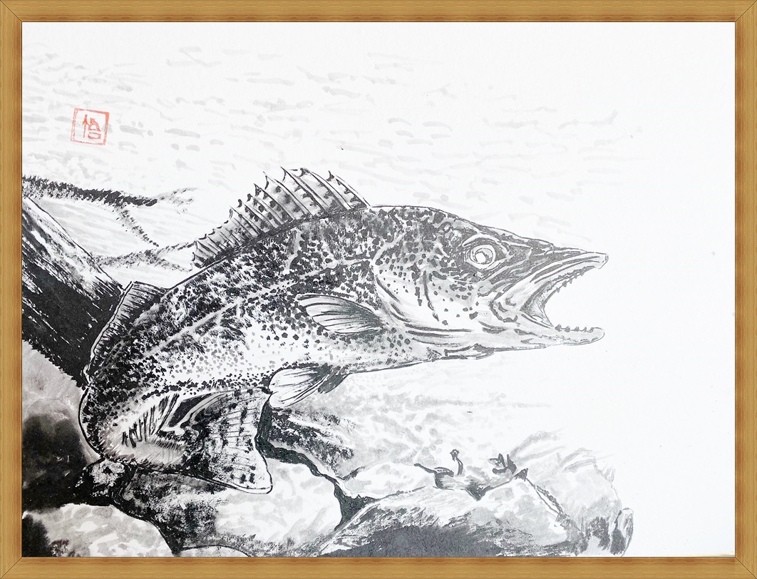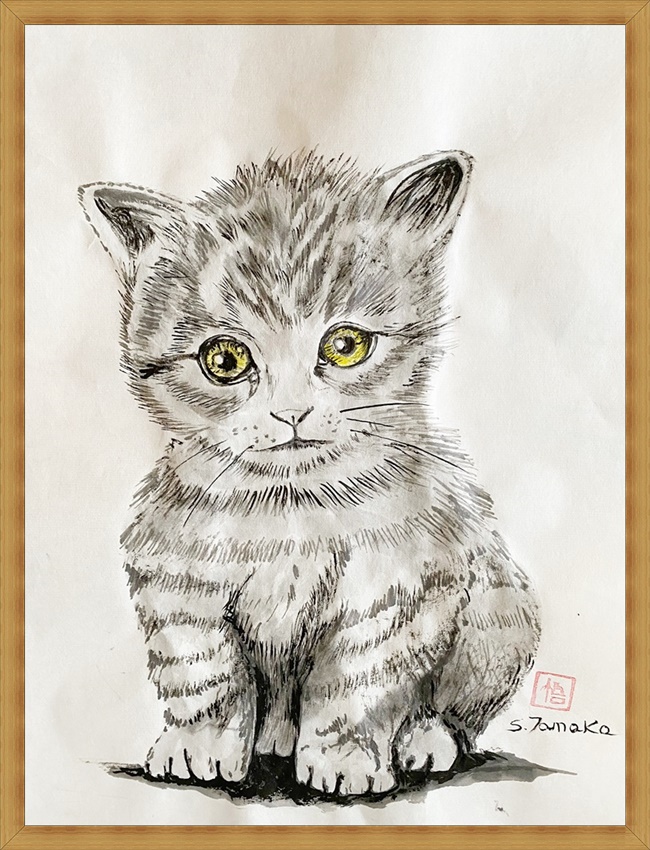 40期 田中さんの「水彩画、水墨画(墨絵):川魚・猫・パンダ」