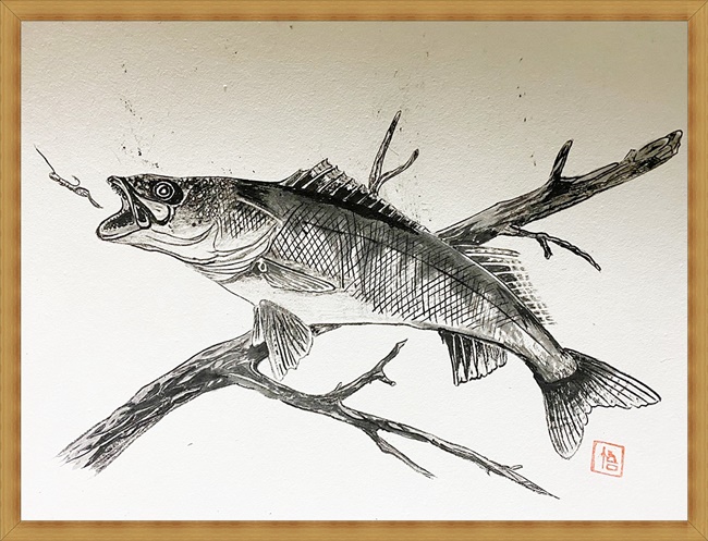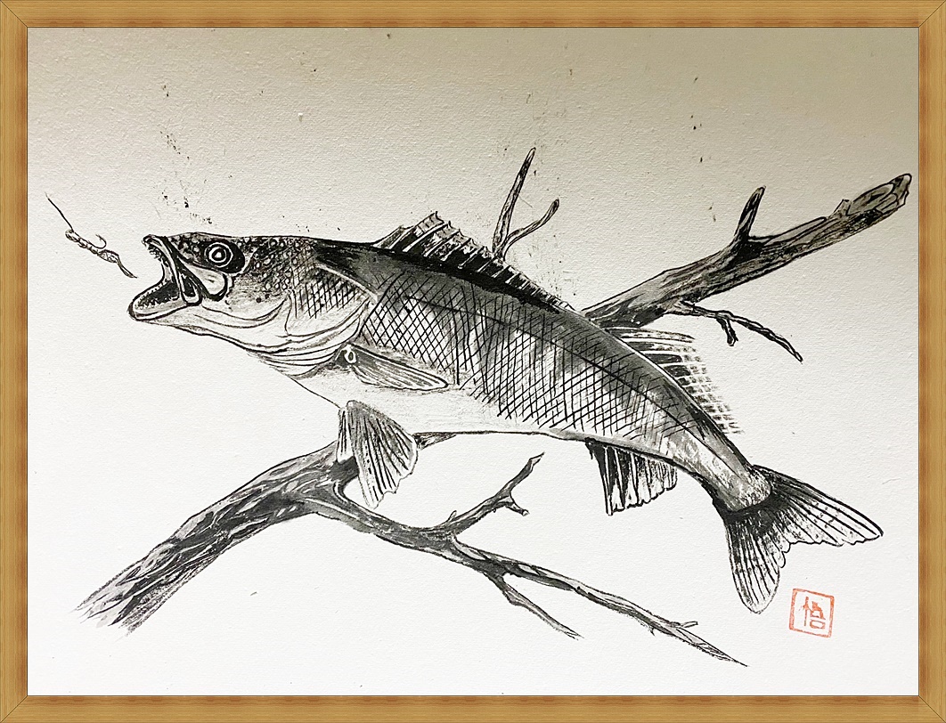 川魚は鯉しか描いていませんでしたが、久しぶりに川魚を描きました。しかし、この魚の名前が不確かなので「アマゴ」と言う事にしました。