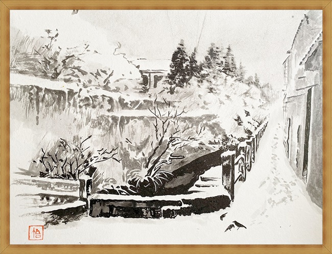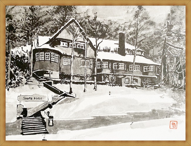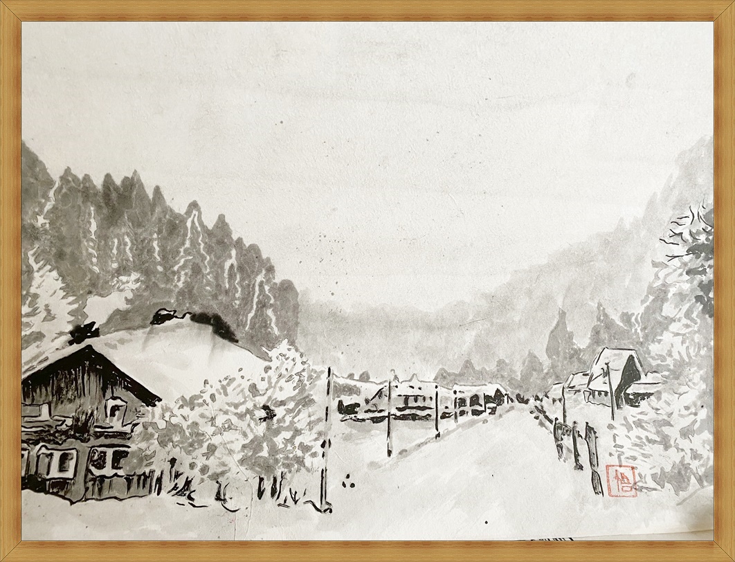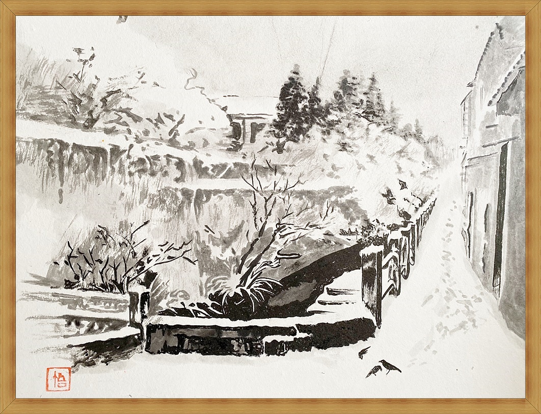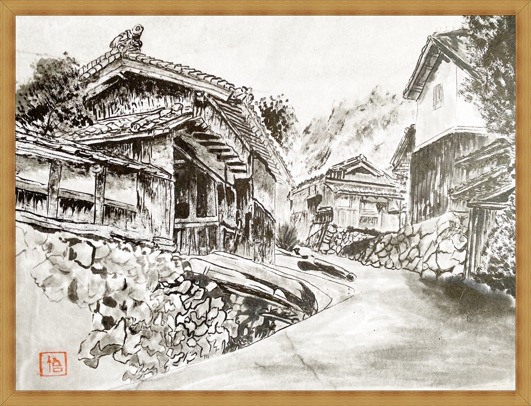 今回の絵は直接行って描いた絵では有りません、以前、旅行の際撮った写真を見たり雑誌に掲載されていた風景を模写したりしています。