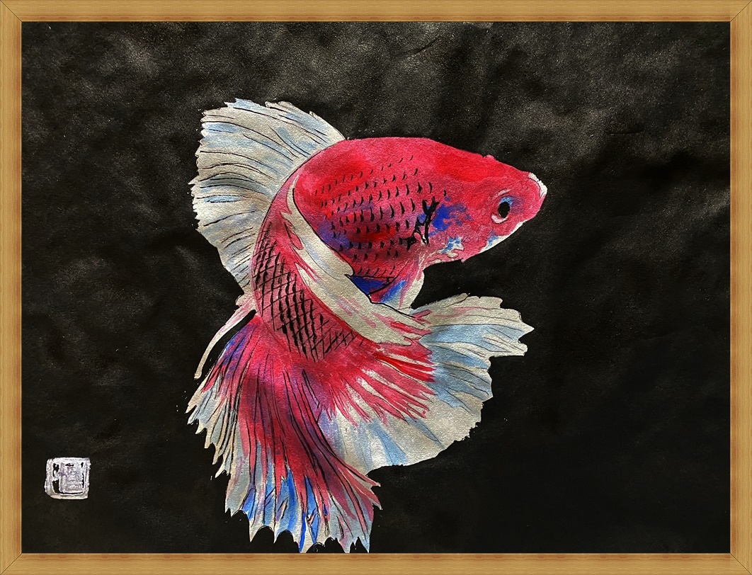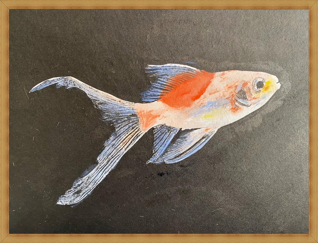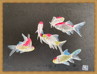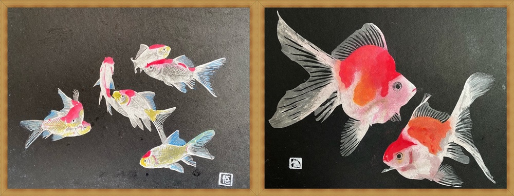 前回もそうですが金魚―9以外は和紙に墨を背景に塗っています。