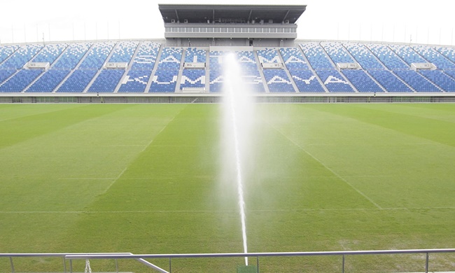 (丁度、グランドでは散水の真っ最中でした)
