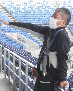 (競技場内に入ります) (観客席からグランドを)