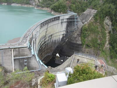 (展望台から放水口を望む) (展望台まで頑張りました)